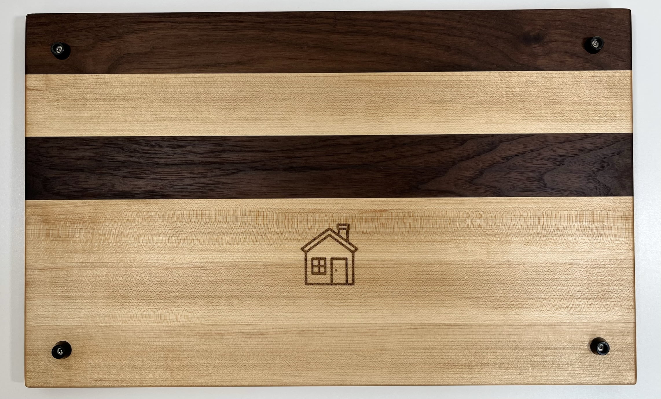 De snijplank is gemaakt van esdoorn en Amerikaans notenhout. in een afwisselend patroon. Aan de onderzijde zijn rubberen voetjes gemonteerd zodat de snijplank tijdens gebruik stabiel blijft liggen. De snijplank is behandeld met minerale onderhoudsolie met bijenwas.